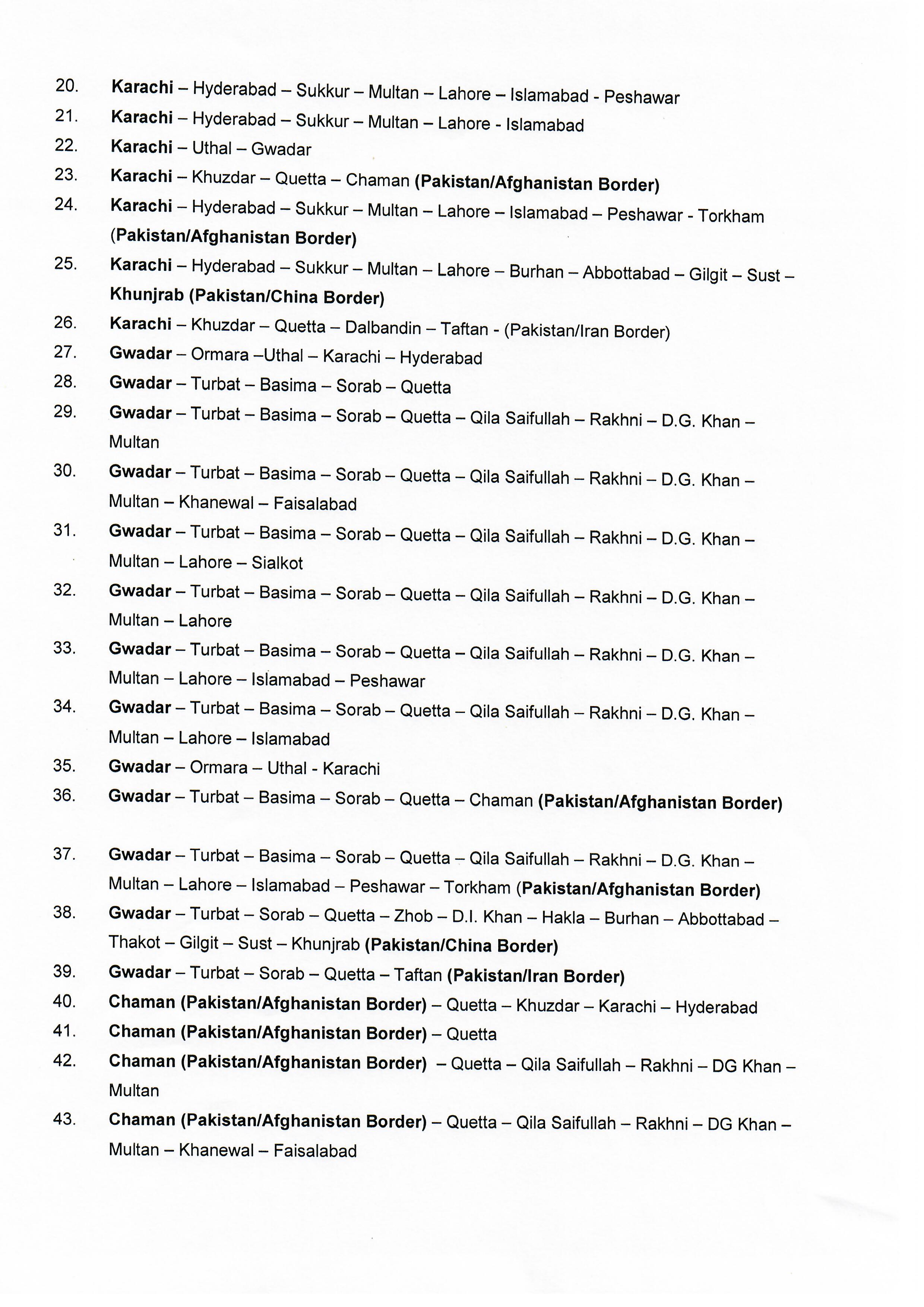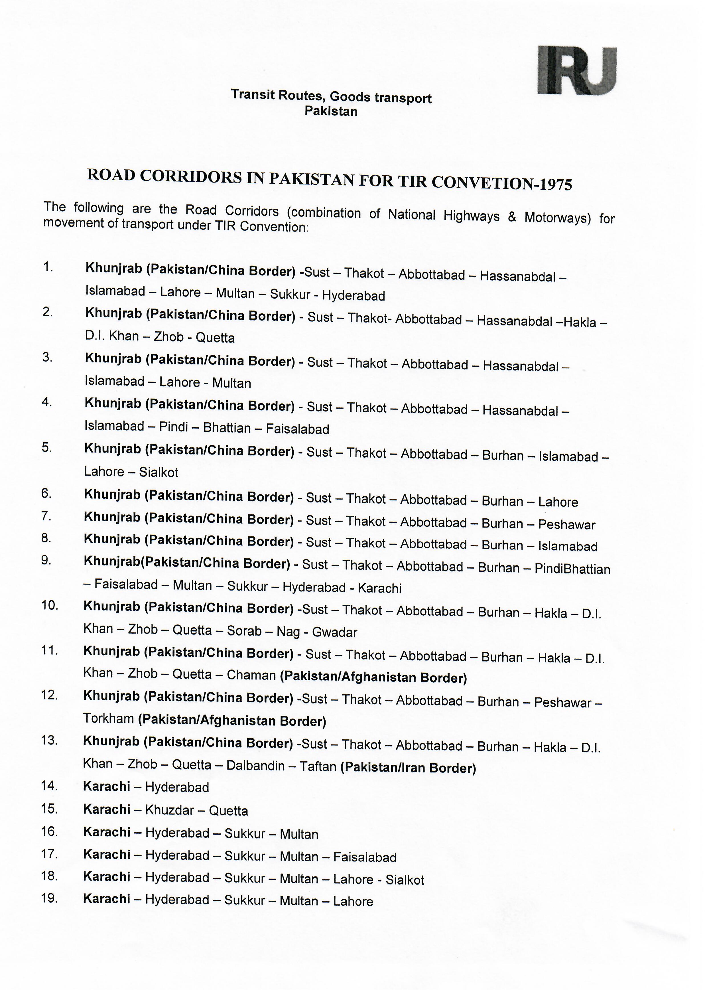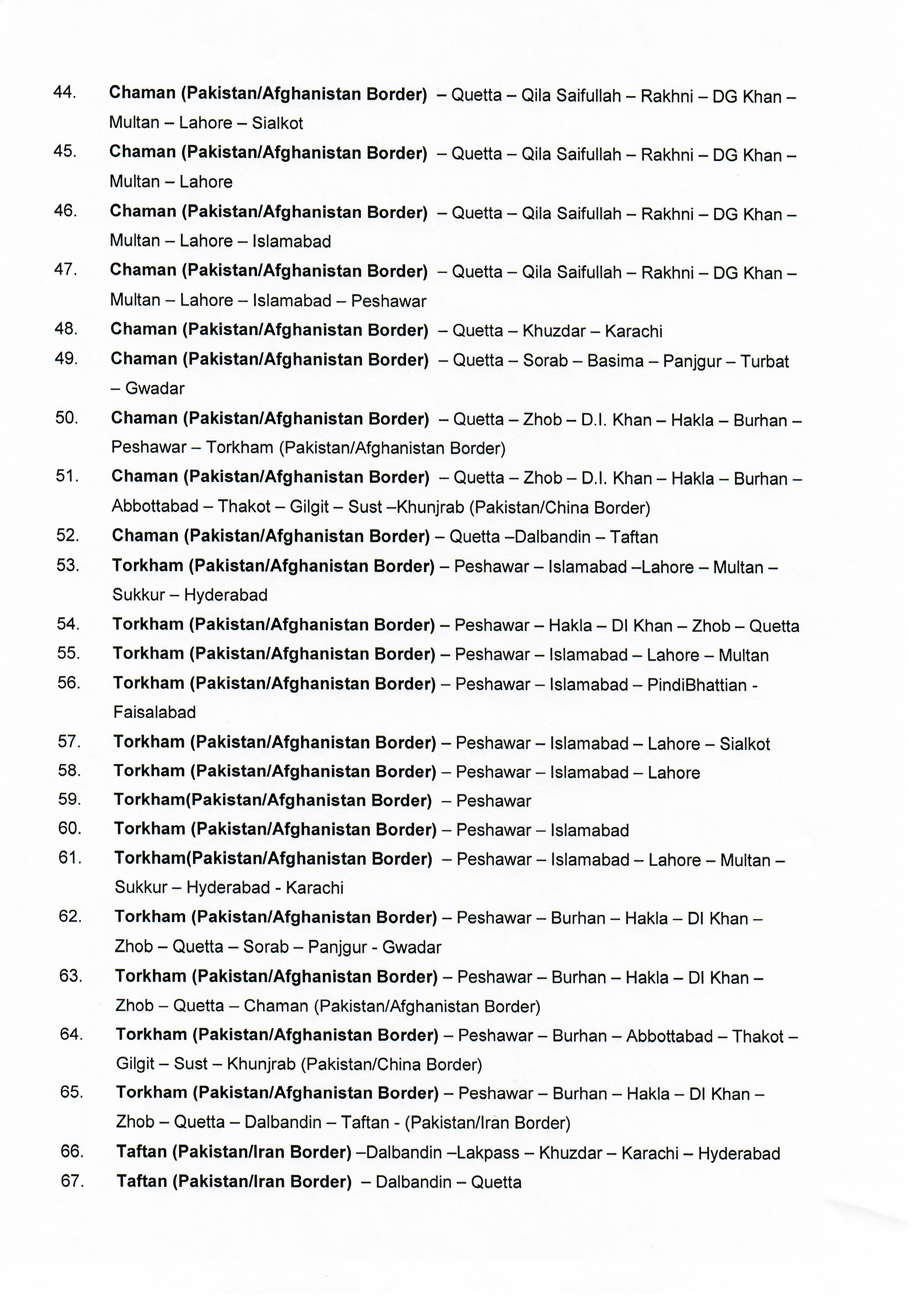 بپیوست لیست مسیرهای ترانزیتی تیر در پاکستان جهت هرگونه بهره برداری تقدیم می دارد.